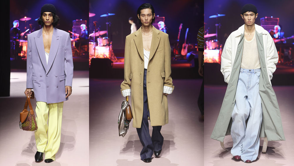 Dopo stagioni dominate da linee più pulite, il volume torna protagonista. Pantaloni harem, barrel e silhouette arrotondate ridisegnano la figura, creando movimento a ogni passo. Non si tratta solo di proporzioni, ma di una nuova idea di dinamismo: il capo si muove insieme al corpo, diventandone estensione.
